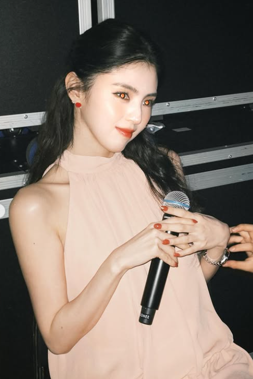 이 사진은 기존의 청순 이미지와 대비되는 고혹적이고 성숙한 무드로, 한소희의 다면적인 매력을 제대로 보여준 순간이었습니다.