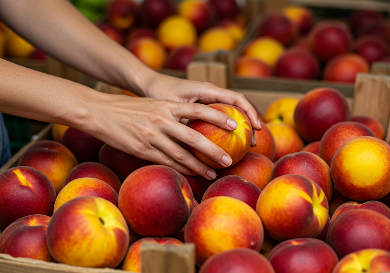 | 마트나 시장에서 복숭아 직접 고르는 사람 | 겉모습으로 당도 좋은 복숭아 고르기 |