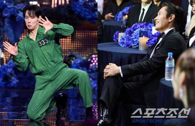 무대 위에서 퍼포먼스를 선보이던 그는 갑작스레 배우 이병헌의 과거 브레이크댄스 영상이 등장하자 “선배님 죄송하다”며 즉석 사과를 전했고, 이를 본 이병헌은 당황한 듯한 표정을 감추지 못했습니다.